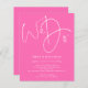 Um valor para o alternativo do ORÇAMENTO em tamanho menor de 4,5 x 5,6" de semirbrilho de 110 lbs, que é de espessura semelhante a um cartão postal (no entanto, não é adequado para uso como cartão postal). POR FAVOR, OBSERVE QUE HÁ UM convite por roteiro de orçamento de folha A que fazemos o convite de casamento rosa-quente. Um design de texto simples e elegante e brilhante. Script do conjunto de na moda: Nós fazemos o palco central no topo.O resto do texto que você pode personalizar facilmente. As cores de texto e de fundo podem ser alteradas se você quiser se adequar melhor ao seu tema de casamento através da opção personalizar mais.