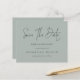 Escrita Minimalista De Orçamento Verde Leve Salva A Data. Um alternativo de 4,5 pol x 5,6 pol com preço inferior. Disponível em um STOCK CARD SEMI-GLOSS de 110 lb, que é semelhante em espessura a um cartão postal. Há um por folha. Simples elegância com Salvar a Data em um script de conjunto moderno.O resto do texto que você pode personalizar facilmente.Mostrado aqui em preto no verde Sage, no entanto, as cores de texto e plano de fundo podem ser alteradas se você desejar por meio da opção personalizar mais.