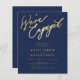 Simples caligrafia de ouro falso-quente e marinho que estamos contratando para o convite de festa de noivado do BARATO BUDGET.