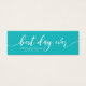 Esta miniplaca na moda contém as palavras "melhor dia de sempre" em um script branco contra uma cor de fundo editável (clique em personalizar para acessar). Faz uma etiqueta de excelente para o teu presente de casamento. É fácil personalizar; basta substituir o texto do marcador de posição para adicionar suas próprias informações. Para obter mais opções, como alterar a fonte, o tamanho do texto ou o espaçamento entre letras, clique no botão "Personalizar". *Observe que a Marca d'água do Zazzle que aparece na visualização de zoom NÃO aparecerá no produto impresso final. © Rosewood e Citrus