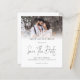 NOTA Há duas opções de papel a escolher para este tamanho (4,5 x 5,6") na faixa de Orçamento. Para este produto, eu recomendaria muito o semibrilho, que é um estoque de cartão de 110 gsm, semelhante em espessura a um cartão postal. A opção Satin é um papel muito mais fino, 80gsm. O padrão é definido como semirbrilho. ***POR FAVOR, OBSERVE QUE HÁ UM convite por folha. Script de Sobreposição de Fotos de Orçamento Salvar A Data está em um script de conjunto moderno. Substitua a foto de exemplo pelo seu favorito.