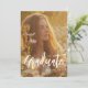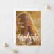 Este anúncio casual de graduação da tendência apresenta duas fotos da faculdade ou do formando do segundo grau. Um roteiro branco casual e moderno aparece na camada frontal de fotos, junto com uma foto do formando no verso, com uma simples fonte preta para o anúncio. Você pode ajustar o texto na parte traseira do cartão para fazer com que isso seja um simples anúncio de graduação ou um convite de festas de formando. Um na moda e design simples para a graduação deste ano!
