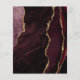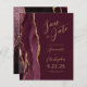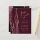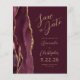 A borda esquerda deste elegante casamento moderno salve o cartão de data apresenta uma borda vermelha e borrifada de cor-d-água cortada com falso brilho dourado. O texto personalizável combina um script dourado e fontes sans serif em um fundo burgundy. O lado inverso apresenta uma burgundy e uma design de agata dourada.