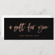 Este certificado de presente para pequenas empresas moderno apresenta uma falsa tipografia casual de roteiro de ouro rosa que diz "um presente para você", num fundo negro escuro.
