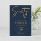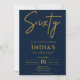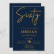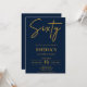Este Convite de aniversário Dourado e Azul 60º Script Minimalista apresenta um roteiro de Ouro "Sessenta", perfeito para honrar seis décadas de vida, é na moda e elegante, surpresa de excelente para uma celebração de aniversário de um marco,