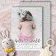 Este é um adorável modelo de anúncio de bebê moderno e simples. Personalize com sua própria fofa fofa de seu recém-nascido e adicione seus detalhes. Há um gradiente branco elegante que dá a esta modelo uma borda única.