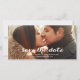 Salvar nossa Data | Script Moderno Salve o Cartão com fotos Data. Design por Elke Clarke© Bold, uma camada simples e moderna de texto de script branco. Totalmente personalizável se você selecionar "personalizar". Substitua a foto de exemplo mostrada com sua própria foto de noivado. Outras cores disponíveis.