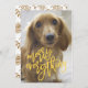 Feliz Tudo Cartão com fotos Espetacular Script Amarelo. Sua foto no verso ou atual padrão de apoio floral vermelho. Estilo bonito de script de caligrafia. Estilo de inscrição. Grande design de fotos. Feliz, design festiva.