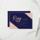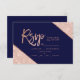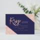 Rosa Dourada tipografia no marinho azul personalizável de bloco colorido de cor azul rosa de ouro, e faux rosa geométrico stripes chic rsvp casamento, perfeito para elegante casamento na moda,