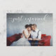 Este elegante cartão de anúncio do casamento mostra sua foto pessoal com uma camada de roleta branca que diz "recem casados", e uma mármore nas costas.