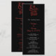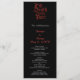 Menu e programa Gothic Wedding - Roteiro Metálico Vermelho em Preto para seus convidados durante a noite com este dramático menu de casamento e cartão de programa. Apresentando uma escrita metálica vermelha sobre fundo preto, ela combina elegância escura com funcionalidade. Liste a linha cronológica da sua cerimônia, menu de janto ou obrigados especiais em um layout tão ousado quanto a sua celebração. Perfeito para casamentos humorísticos, góticos ou inspirados no Halloween. Ajudado por IA para clareza de layout e contraste visual. Eu posso ganhar uma pequena comissão de compras feitas através de links de afiliados, sem nenhum custo extra para você.