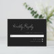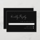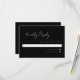 Placa de resposta mínima de script 3,5 x 5. Texto branco sobre fundo preto. Parte de uma coleção de casamento.