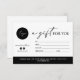 Um certificado de presente mínimo elegante com A GIFT FOR VOCÊ em fonte casual manuscrita emparelhada com uma fonte serif clássica com dois ícones sociais (Facebook e Instagram) e espaço para sua conta social. Na parte inferior, uma borda preta com os detalhes de contato do seu cheio em branco. Nossa modelo de presente de certificado estabelece um equilíbrio perfeito entre elegância moderna e marca personalizada. Você pode integrar facilmente o logotipo de sua empresa, garantindo que sua identidade de marca brilhe. QUALQUER COR DISPONÍVEL Se você precisar de ícones adicionais ou modificações específicas, não hesite em entrar em contato conosco em citronelladesign@gmail.com antes de fazer seu pedido Qualquer empresa que queira atrair clientes, aumentar vendas ou fornecer incentivos para ações específicas pode se beneficiar com o uso de vales-presente como parte de seus esforços de marketing e promocional. É uma excelente escolha para Restaurantes e Cafés, Spa e Centros de Bem-Estar, Viagem e Turismo, vales-presente para serviços como massagens, faciais e tratamentos de bem-estar.