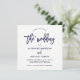 Este convite de casamento moderno, marinho e branco apresenta a tipografia de argumentos de tendências e um layout simples e na moda.