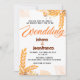Os modernos concursos de trigo de alivio alto com sombras leves e folhas de outono em tons sujos como russet, laranja queimada e terracota. A escolha perfeita para os casamentos outono. O dorso apresenta um sutil arranjo de trigo de alivio alto. A parte traseira apresenta um fundo com textura laranja clara e amarela.