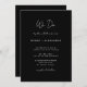 Bem-vindos ao nosso Black Modern Script We Do Wedding Invitation design, onde o minimalismo moderno encontra a arte da caligrafia. Esta estética curada traz um ar de sofisticação para o seu dia especial - com uma reviravolta de feitiço, charme casual. A combinação de uma simples tipografia com uma letra na moda adiciona uma personalidade única ao seu casamento. Este design clássico oferece um aspecto eterno e polido que é perfeito para primavera, verão, outono ou casamentos no inverno. Uma simples paleta subestimada de fundos pretos e texto branco cria o cenário neutro perfeito para sua celebração. Torne seu casamento muito elegante com nossa adorável coleção de Script Moderno. Tal como acontece com todos os nossos designs, se tiverem perguntas ou pedidos especiais, por favor, perguntem.