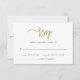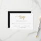 Esta placa RSVP de casamento dourada moderna apresenta a tipografia do roteiro e um layout simples e na moda.