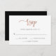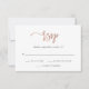 Esta placa RSVP de casamento rosa dourada moderna apresenta uma tipografia de script de tendência e um layout simples e na moda.