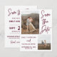 Use nossas cartões salve a data de fotos modernas com duas fotos para que seus convidados saibam bloquear sua data de casamento antecipadamente. As cores de todo o texto são personalizáveis - você pode escolher uma cor de uma das opções mostradas ou clicar em "Editar Design", onde você pode alterar cada caixa de texto para qualquer cor que desejar. O verso tem um espaço pré-desenhado para adicionar mais informações como o seu site de casamento. Se preferir que o verso seja vazio, você pode excluir todas as caixas de texto ou simplesmente colocar um elemento quadrado sobre o texto e redimensionar para cobrir todo o verso (você pode até mudar a cor do elemento para ter um backer colorido!). Verifique nossa grande seleção de cartões salve a data de fotos, cartões postais e ímãs navegando em nossa coleção Imagem Salvar a Data!
