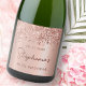 Rótulo Elegante Moderno de Vinho de Festa de aniversário Minúsculo Rosa dourado brilhante metálico Monograma Personalizado de Nome 80 (ou QUALQUER IDADE). Esta design de festa de Aniversário feminina Girly Adult, com um Monograma Name em um roteiro de caligrafia manuscrito em na moda, data e idade em preto rosa ou ouro rosa ou folha metálica esfregada em forma de fundo com moldura de brilho solto. Ideal para uma celebração feminina de aniversário de um adulto ou de um marco feminino, isto captura perfeitamente a essência de um rosa moderno ou de uma festa de aniversário cintilante rosa-reluzente.