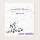 Cartão-presente chic para o seu negócio de lash com lascas oculares falsas em ouro espalhadas sobre fundo branco. O Certificado de Presente é escrito em um belo roteiro preto. Seu nome e serviço em letras roxas. Adicione o nome da sua empresa no cobrir e, no verso, as suas informações de contato. Dentro pode escrever um texto de isenção de responsabilidade ou restrições do cartão-presente.