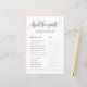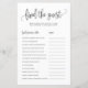 Adicione este jogo divertido e divertido "Encontre o Convidado" ao seu evento. Ele apresenta uma escrita branca preta, tipografia clássica, fundo rosa-claro. Você pode personalizar a parte traseira deste cartão de jogo de chá de panela. Esta opção Find the Guest game card é perfeita para qualquer tema e estação do chá de panela.