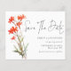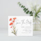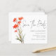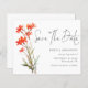 Script De Código QR De Flores Vermelhas De Boho De Orçamento Salva A Data. Um alternativo com preço inferior a 4,5 x 5,6" em um semigloscópio de 110 gsm, com espessura semelhante à do cartão-postal. Há um por folha. Adicione seu código QR ao seu site de casamento ou simplesmente exclua-o se não for necessário. Um design floral minimalista com Salvar a Data em um script moderno.O resto do texto que você pode personalizar facilmente. As cores do texto e do plano de fundo podem ser alteradas se você desejar por meio da opção personalizar mais.