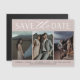 Uma imã salve a data moderna projetada para acomodar 3 fotos verticais alinhadas lado a lado. "Salve a data" aparece no topo em caracteres de chic block e escrita, com seus nomes, data do casamento e local do casamento embaixo, juntamente com seu site de casamento ou detalhes adicionais.