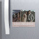 Uma imã salve a data moderna projetada para acomodar duas fotos de noivado alinhadas lado a lado. "Salvar a data" aparece abaixo de suas fotos em caracteres de chic block e escrita, com seus nomes, data do casamento e local do casamento embaixo, juntamente com seu site de casamento ou detalhes adicionais.