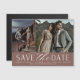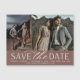 Uma imã salve a data moderna projetada para acomodar duas fotos de noivado alinhadas lado a lado. "Salvar a data" aparece abaixo de suas fotos em caracteres de chic block e escrita, com seus nomes, data do casamento e local do casamento embaixo, juntamente com seu site de casamento ou detalhes adicionais.