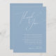 Apresentando nossa impressionante escrita caprichosa | cartões de agradecimentos azul empoeirado 5"x7" perfeito para a sua simples celebração do primavera boho moderno. Nosso elegante design inclui uma paleta de cores vibrante brilhante e pastel com um script de caligrafia quic vintage. Quer você prefira um estilo minimalista ou clássico, nosso produto editável exclusivo oferece luxo e elegância, perfeito para criar um toque clássico, ainda que romântico, para tornar seu dia especial inesquecível. Contacte-nos com quaisquer perguntas sobre o design, e deixe-nos ajudá-lo a fazer o casamento dos seus sonhos.