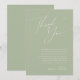 Apresentando nossa impressionante escrita caprichosa | cartões de agradecimentos verde sábio 5"x7" perfeito para a sua simples celebração do primavera boho moderno. Nosso elegante design inclui uma paleta de cores vibrante brilhante e pastel com um script de caligrafia quic vintage. Quer você prefira um estilo minimalista ou clássico, nosso produto editável exclusivo oferece luxo e elegância, perfeito para criar um toque clássico, ainda que romântico, para tornar seu dia especial inesquecível. Contacte-nos com quaisquer perguntas sobre o design, e deixe-nos ajudá-lo a fazer o casamento dos seus sonhos.