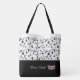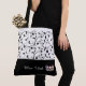 Esta bela sacola de vanguarda mostra uma coroa prateada brilhante e seu nome/título/pageante personalizado embaixo sobre o preto com o saco de tote superior em branco com vidros negros e rolhas por toda parte. Os gráficos e o texto estão em ambos os lados desta bolsa de tote. Alça preta. Personalize mais ou mais comprares, conforme mostrado.