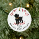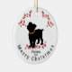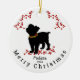 Frente e Verso: Este adorável ornamento de Natal apresenta uma design minimalista de um cão malicioso esfregado vestindo uma colorida terra de Natal Palavras Personalizáveis: "Melissa" "2024" "Feliz Natal" Preto Vermelho Verde Branco