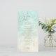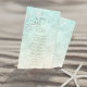 Uma textura aquosa nos tons macios do mar e da areia é o fundo de elementos marinhos, como o peixe-estrela e as conchas, que são aperfeiçoados com ondas de espuma marinha para criar os pedaços desta suíte de casamento. O cartão de menu de casamento mostrado aqui contém todas as opções acima, além de uma modelo para adicionar facilmente suas próprias seleções de menu, iniciais e data de casamento. Procure ID837 para ver todas as peças de coordenação neste conjunto.