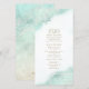 Uma textura aquosa nos tons macios do mar e da areia é o fundo de elementos marinhos, como o peixe-estrela e as conchas, que são aperfeiçoados com ondas de espuma marinha para criar os pedaços desta suíte de casamento. O cartão de menu de casamento mostrado aqui contém todas as opções acima, além de uma modelo para adicionar facilmente suas próprias seleções de menu, iniciais e data de casamento. Procure ID837 para ver todas as peças de coordenação neste conjunto.