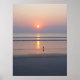 Belo poster com uma foto de uma pequena gaivota parada na praia em frente a um nascer do sol oceano em Daytona Beach, Flórida.