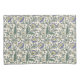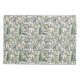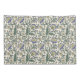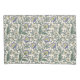 Seamless repeating pattern featuring stylized blue, yellow, and white floral motifs with green vines and leaves on a cream background.