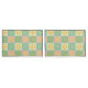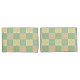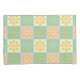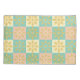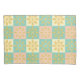 A seamless pattern with geometric floral motifs in yellow, pink, and teal on pastel squares, creating a vintage, harmonious, and cheerful design.