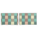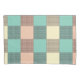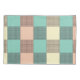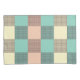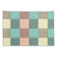 A seamless plaid pattern with alternating pastel squares in turquoise, cream, and beige. Each square is filled with a crisscross grid design, creating a vintage and orderly feel.