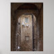 Poster de um beco na Toscana com roupa suja pendurada para secar em frente a uma parede de tijolos na Itália.
