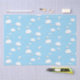 Este divertido papel de revestimento de presente apresenta vários aviões de papel branco dobrado ilustrado e suas trilhas de voo com nuvens fofinhas em um fundo azul-céu - o plano de fundo é mostrado em azul, mas pode ser personalizado para qualquer cor que contraste com os gráficos brancos no design - por katz_d_zynes