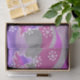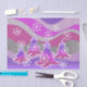 Uma paisagem de inverno moderna e estilizada com pinheiros foscos e flocos de neve espumantes. Papel tecidular com cinza púrpura, rosa, prata e design branco personalizável para você personalizar com seu próprio texto, imagens e ideias. Imagem criada usando um desenho a lápis colorido melhorado digitalmente.