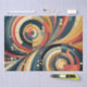 "Dualidade" é uma obra-prima inspirada em Bauhaus que encapsula perfeitamente a interação entre contraste e harmonia. A design apresenta uma composição marcante de formas geométricas, focando principalmente círculos e arcos, dispostos em um padrão simétrico, mas dinâmico. A composição é dividida em duas seções principais, cada uma dominada por uma grande forma circular que parece estar em movimento. Isto cria um sentido de equilíbrio e contraste, refletindo o conceito de dualidade. A paleta de cores é uma mistura harmoniosa de cores primárias — vermelho, amarelo e azul — destacada com tons de bege. Essas cores são cuidadosamente combinadas para criar um aspecto vibrante e coeso. Círculos e pontos menores são intercalados por todo o design, adicionando profundidade e textura. A interação entre curvas e linhas de hetero, além do uso de cores contrastantes, incorpora os princípios Bauhaus de fundir funcionalidade com expressão artística. "Dualidade" é uma obra visualmente cativante que capta a essência da estética Bauhaus, enfatizando a simplicidade, as formas geométricas, e a integração perfeita da arte e da tecnologia. Esta design não é apenas um trato visual, mas também um testemunho da beleza eterno dos princípios de Bauhaus.