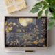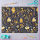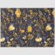 Papel de tecido de excelente para amantes de plantas ou jardineiros. Este design apresenta um impressão completo de botânicos em ouro/ amarelo e cinzas sobre fundo preto. Vaso de vidro e lanternas são aspergidos por todo o design. Pode ser utilizado para desacoplamento ou embalagem de presente com um cottagecore ou estética de boho.