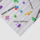 Lenço de papel coberto em monstro bonitos e em texto do feliz aniversario. Excelente para o aniversário de algum monstro pequeno.