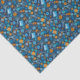 Papel tecidular com um padrão adorável, material de costura - tesoura, botões, colheres de fio, agulhas - espalhado sobre fundo azul escuro. Esse design, elaborado a partir de colagem de papel feita à mão, faz um presente de excelente para artesãos e esgotos.