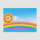 Um belo, foto de um sol sorridente sobre um arco-íris, é apresentado neste papel de embrulho de tecido. Coloridos e brilhantes, isto pode ser usado para embrulhar pequenos presentes, joias ou encher um saco de presentes. Excelente para aniversários de verão, festas infantis, chás de fraldas e muito mais!