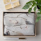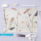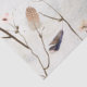 Lindos galhos giros adoravam com penas e flores contra um fundo branco leitoso.