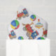 Uma bela ilustração dos brinquedos dos meninos: trem, girando em cima e bola de arco-íris. Você pode usar este papel para qualquer ocasião.